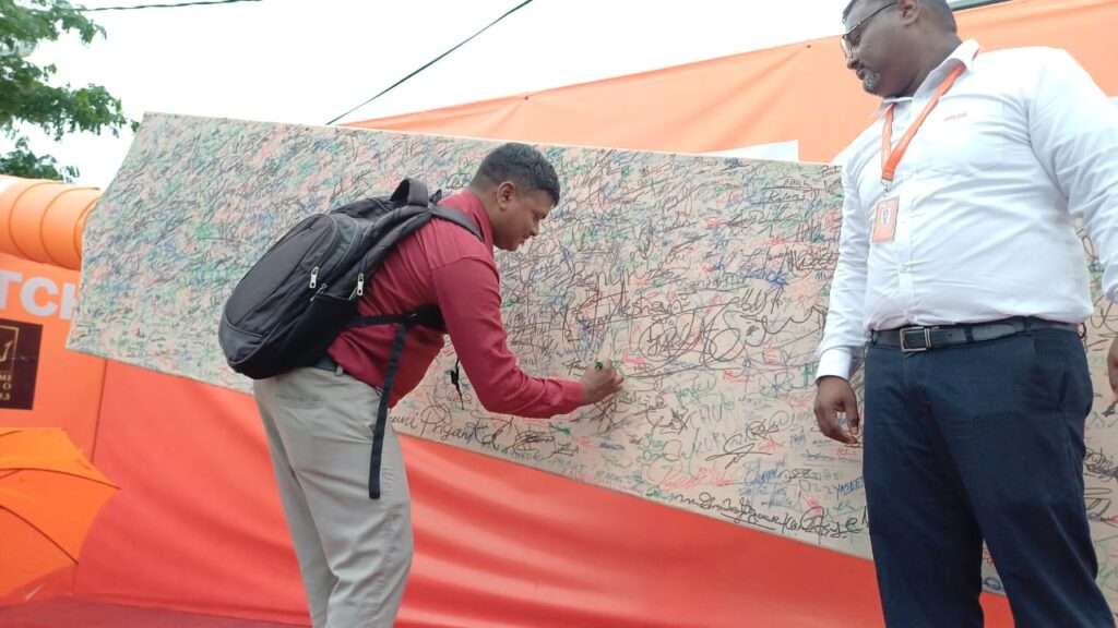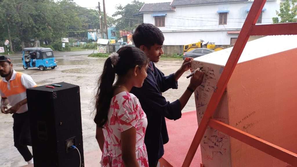 இதன் போதுமக்கள் மாணவர்கள் விளையாட்டு வீரர்கள் மிகுந்த உற்சாகத்துடன் இலங்கை அணிக்கு வாழ்த்து தெரிவித்து தமது கையொப்பங்களை பாரிய துடுப்பு மட்டையில் இட்டனர்
