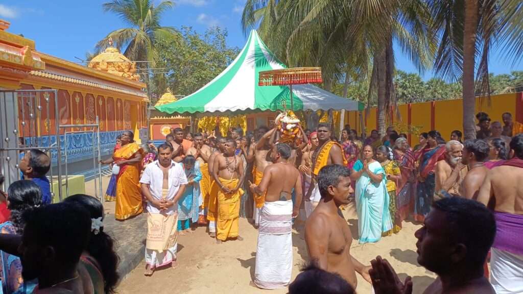 கும்பாபிசேகத்தினையொட்டி கடந்த வெள்ளிக்கிழமை கிரியைகள் ஆரம்பமாகி நடைபெற்றுவந்த நிலையில் 18.04.2026 அன்று காலை 7மணி தொடக்கம் 19.04.226 அன்று மாலை 4மணி வரையில் பெருமளவான அடியார்கள் மூலமூர்த்தி மற்றும் பரிபாலன ஆலயங்களுக்கு எண்ணெய்க்காப்பு சாத்தும் நிகழ்வு இடம் பெற்றது