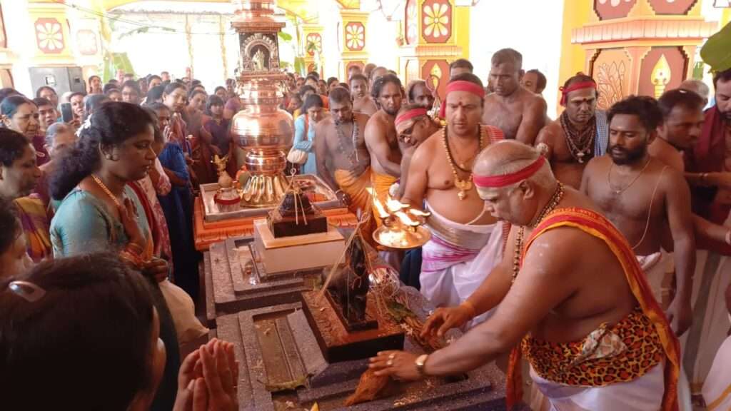 இன்று காலை விநாயகர் வழிபாடுகளுடன் புண்ணியாவாசனம் கிரியைகள் வேத உபசாரங்கள் ஆரம்பமாக பிரதான கும்ப பூஜை,விசேட யாக பூஜைகள் மங்கல வாத்தியங்கள் முழங்க பக்தர்கள் புடைசூழ கும்பங்கள் ஊர்வலமாக கொண்டுசெல்லப்பட்டு ஆலய பரிபாலன மற்றும் மூலஸ்தான மூர்த்திகளுக்கு பக்தி பூர்வமாக வானத்தில் கருடர்கள் வட்டமிட கும்பாபிசேகம் இடம்பெற்றது